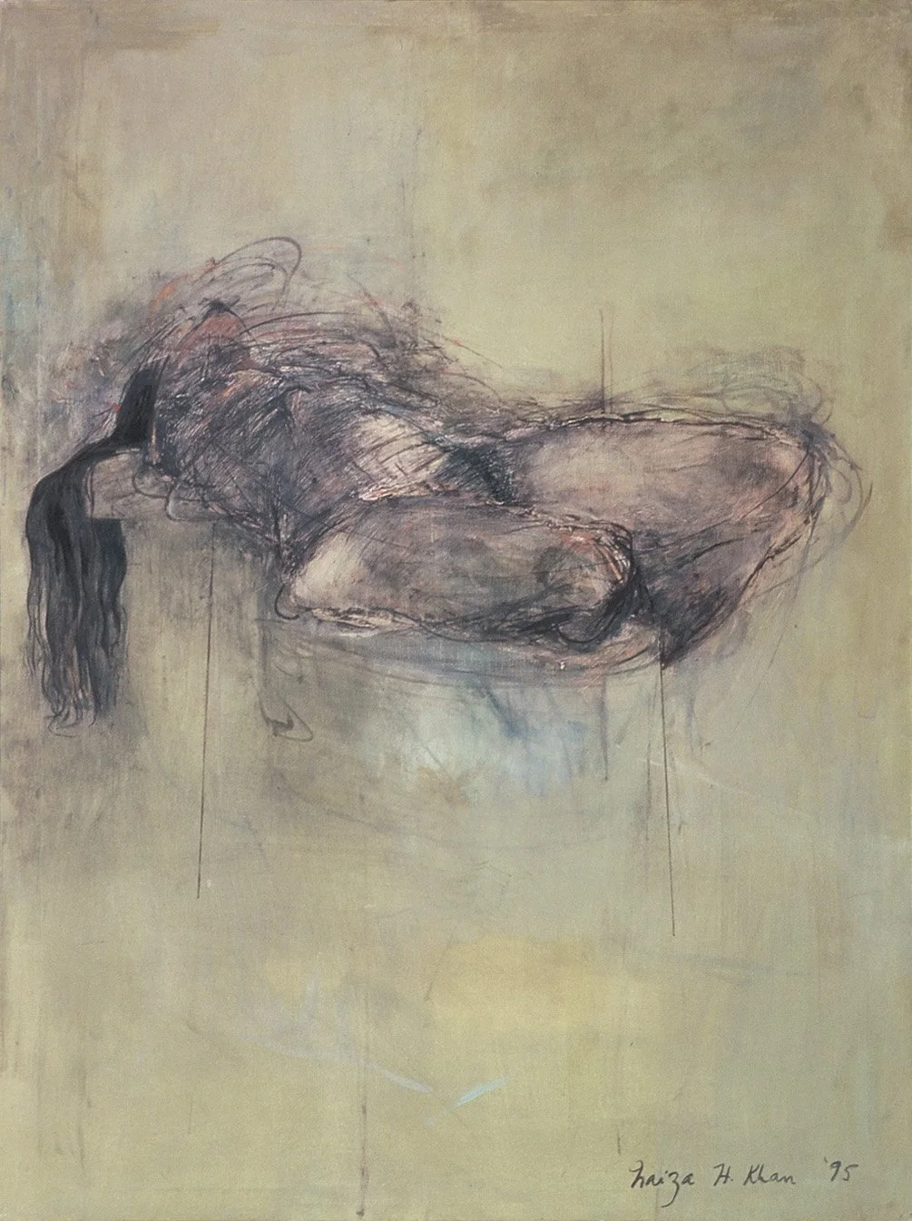 Naiza Khan’s project Voices Merge explores ideas around the physicality of the body – the form, but also its subjectivity. She explores the complexity of life through the female body, pushing the materiality of charcoal and exploring the tension of a line in drawings, paintings, latex works, and silk works.